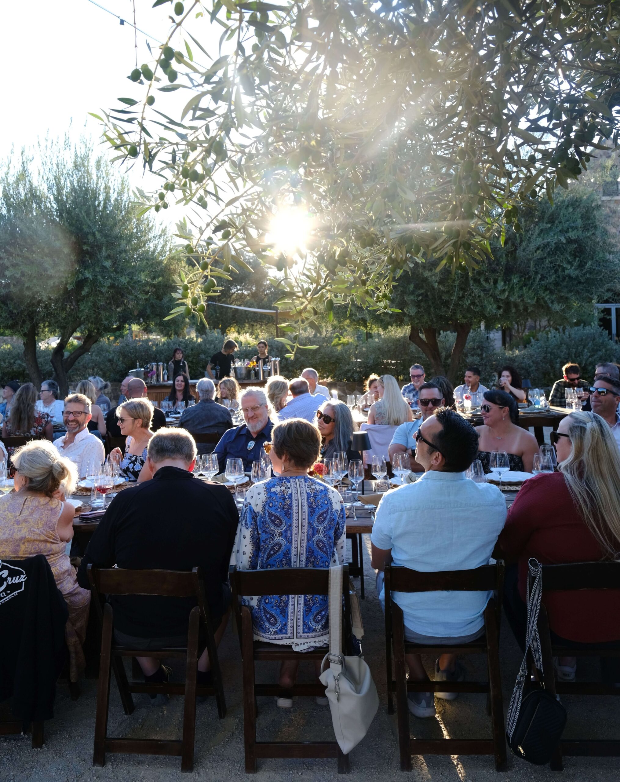 Join us for a special evening on Saturday August 8th to celebrate under the lights of our Olive Grove. Don your favorite boots and bring a jacket for this al fresco fête — we’ll be dining and dancing the night away! Mingle with the Winemakers as they pop open some of our favorite bottles and enjoy a multi-course, family style dinner under the string lights in the Olive Grove. These warm, August nights are always beautiful and this is one of our most popular dinners of the year.