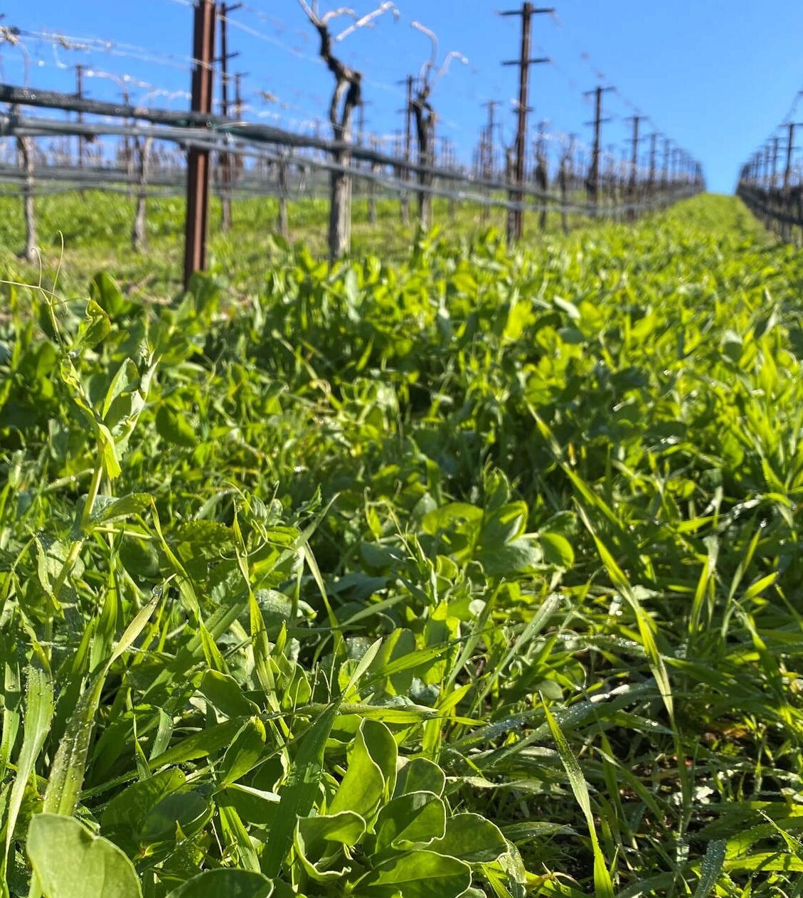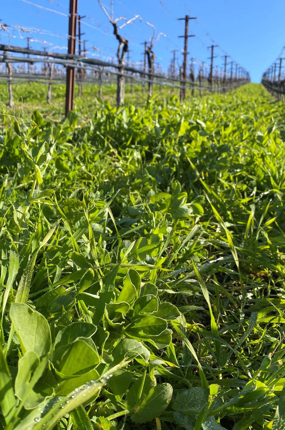 Sheep graze on the cover covers in the late winter turning them into nutrients available to the vines during the growing season. This also saves tractor passes for mowing and weeding.